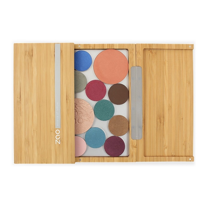 De Bamboe box is een groot bamboe-palet dat een grote hoeveelheid oogschaduw en compact poeders kan opbergen en ordenen. In dit “maxi” palet kun je 25 oogschaduwen bewaren, 9 grote poeders of de combinatie die je zelf wenst.